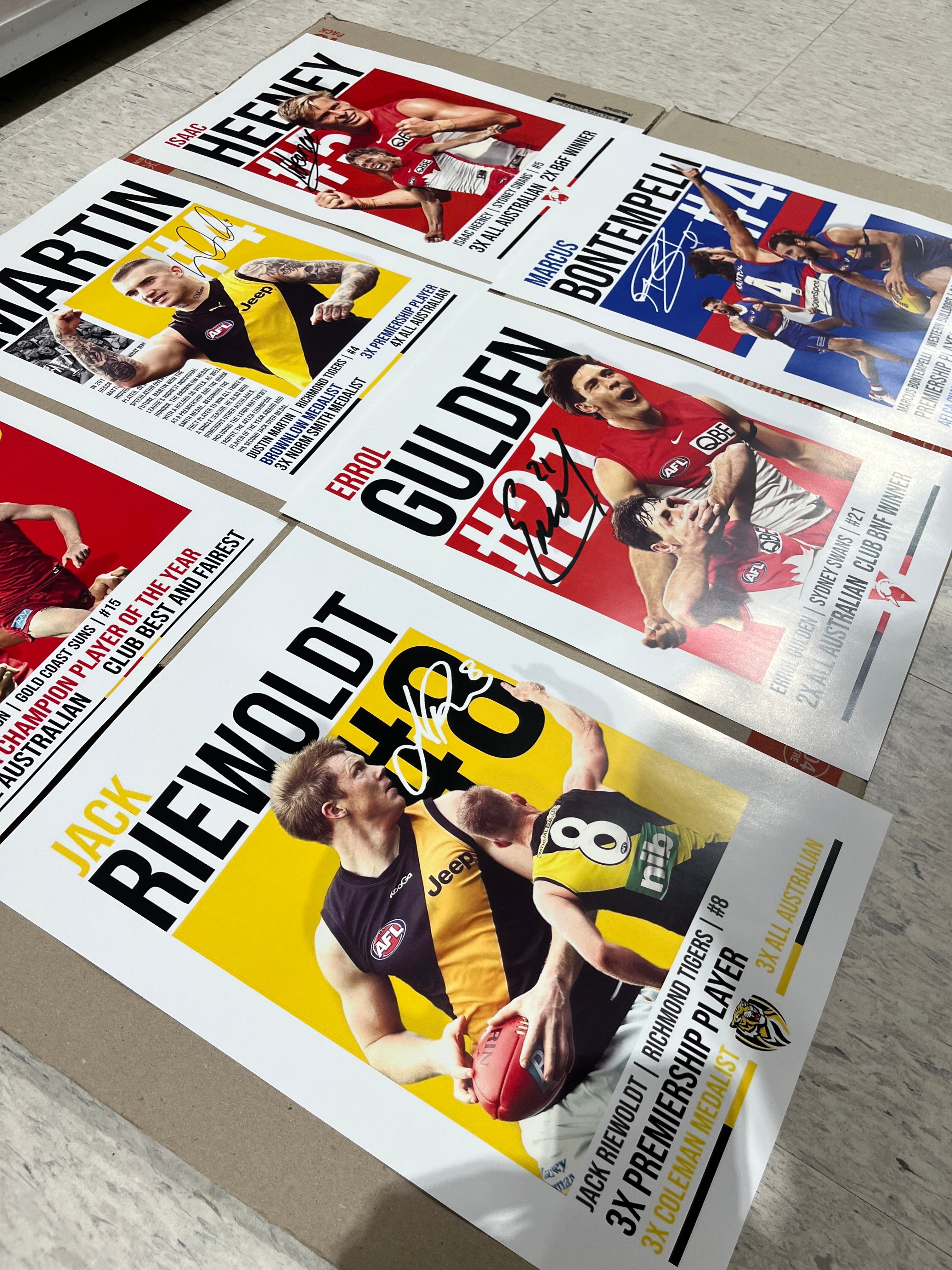 We cover a wide range of sports, including Aussie favorites like AFL, NRL, Cricket, Formula 1, and more. We also love suggestions from fans, if there’s a moment or sport you want to see on your wall, let us know!